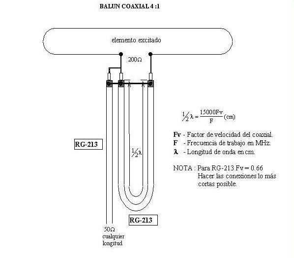 Impedancia: 50 ohmios, por medio de balun coaxial 4:1