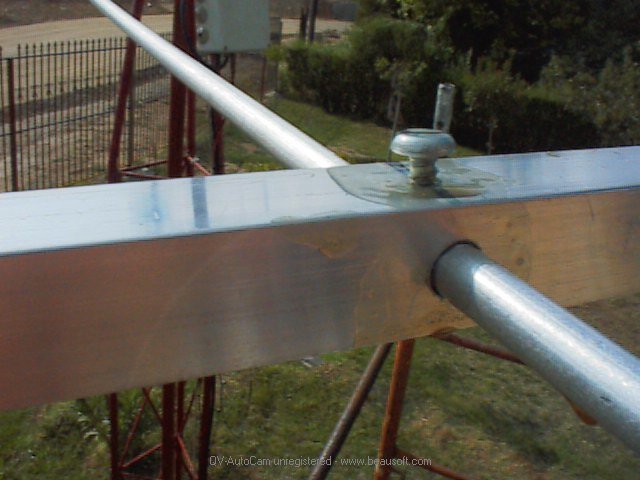 La fabricación de la antena no debería plantear ninguna dificultad. Las dimensiones de los elementos no son críticas y las décimas de mm pueden redondearse sin ningún problema, son el resultado del programa informático. Los elementos se montan en el travesaño taladrando éste con broca de 8mm, para que entren muy justos, pasando el elemento y fijándolo con un tornillo roscachapa como se aprecia perfectamente en las fotografías. Si el elemento entra demasiado justo no hay que forzarlo para que entre, pues llega un momento que se enclava y no podemos ni sacarlo ni meterlo. Se puede limar el orificio con una lima redonda, pero sólo lo justo para que entre casi sin holgura, favoreciéndose así un buen contacto eléctrico con el boom. La parte más complicada es la construcción del dipolo plegado, que en el caso de no disponer de un doblador de tubos sirve perfectamente que quede cuadrado en lugar de forma curva. La única medida importante es su longitud (990mm) mientras que la separación entre conductores puede ser de unos 50 o 60 mm, no siendo nada crítico. En el punto de unión con el balun, la separación entre extremos es de unos 5mm, tampoco tiene gran importancia. El dipolo plegado debe estar aislado completamente del boom y bien centrado respecto de la sección de éste. La construcción del balun coaxial no presenta especiales dificultades, y las medidas pueden obtenerse de la figura. El único dato importante a conocer es el factor de velocidad del cable con el que lo vayamos a construir. Los diseños DJ9BV aconsejan el uso de un cable mejor que el RG213, pero en mi caso no ha existido ningún tipo de problema incluso trabajando al límite legal de potencia en una sola de estas antenas. Muy importante es mantener la estanqueidad de todas las conexiones frente a la intemperie, para lo cual puede ser útil fabricar una cajita de plástico que aloje las conexiones del balun con el dipolo plegado y a su vez sirva de soporte y anclaje al boom. También se debe embadurnar bien de silicona cualquier extremo de cable coaxial que quede al descubierto para evitar cualquier entrada de humedad que arruinaría el cable con un aumento de la ROE y las pérdidas. El cable coaxial debe irse encintando a lo largo del boom a intervalos de unos 50cm hasta el punto de anclaje de éste con el mástil donde vaya a ser colocada la antena. Es fundamental que el coaxial discurra por el boom y no se aproxime a la zona central del elemento por ninguno de sus lados, pues ello daría lugar a un desajuste eléctrico del propio elemento. También unas buenas capas de barniz protector de intemperie anti rayos UVA son una buena medida, sobre todo en los ambientes más húmedos. Una vez tengamos todo listo no hay más que conectar la antena, soportarla en un mástil de dos o tres metros de altura y si hemos respetado correctamente todas las dimensiones, tendremos una ROE inferior a 1.2:1 con casi total seguridad. En el caso de que la ROE no sea del todo correcta, lo que se recomienda es probar con la longitud del dipolo plegado o incluso modificar ligeramente la posición del primer director. Como es del todo improbable que ello suceda, y es un engorro hacer esas operaciones, no creo que sea necesario hacer ningún ajuste. En cuanto a la cuestión mecánica es imprescindible añadir cuerdas de arriostramiento con tensores para evitar la excesiva flexión del travesaño.