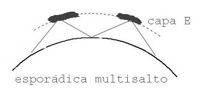 La distancia teórica alcanzable en teoría para una altura de capa E de entre 90 y 120 km es de 2130 y 2450 km respectivamente. Esta distancia corresponde con el máximo de la distribución estadística de QSOs registrados, sin embargo, aparecen contactos hasta distancias de 4000 km, con un segundo máximo entre 3000 y 3500 km mucho menor que el anterior. Este segundo máximo podría darse en el caso de que se produjeran dos saltos consecutivos, circunstancia mucho más difícil aún que un salto sencillo. Otros modos de propagación pueden ayudar a que la señal alcance distancias superiores a la teórica, como es el caso de conductos troposféricos, o refracción troposférica reforzada. Los caminos multisalto se forman a partir de saltos sencillos de la distancia más común, es decir, 1650 +- 250 km. Dividiendo la distancia total entre esa longitud, obtenemos el número de saltos más probable.