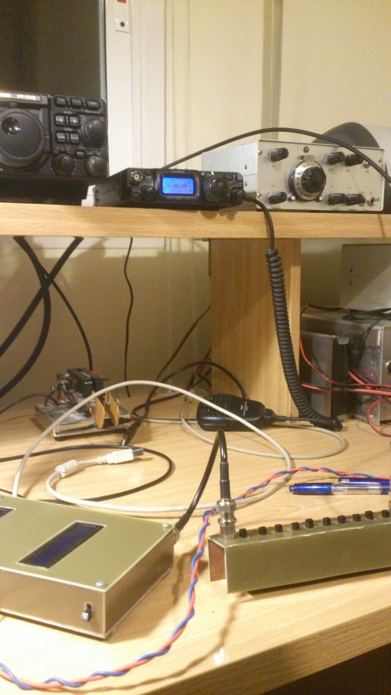 -Home made DDS signal generator at 28.400 MHz. Output signal level is -9 dBm.