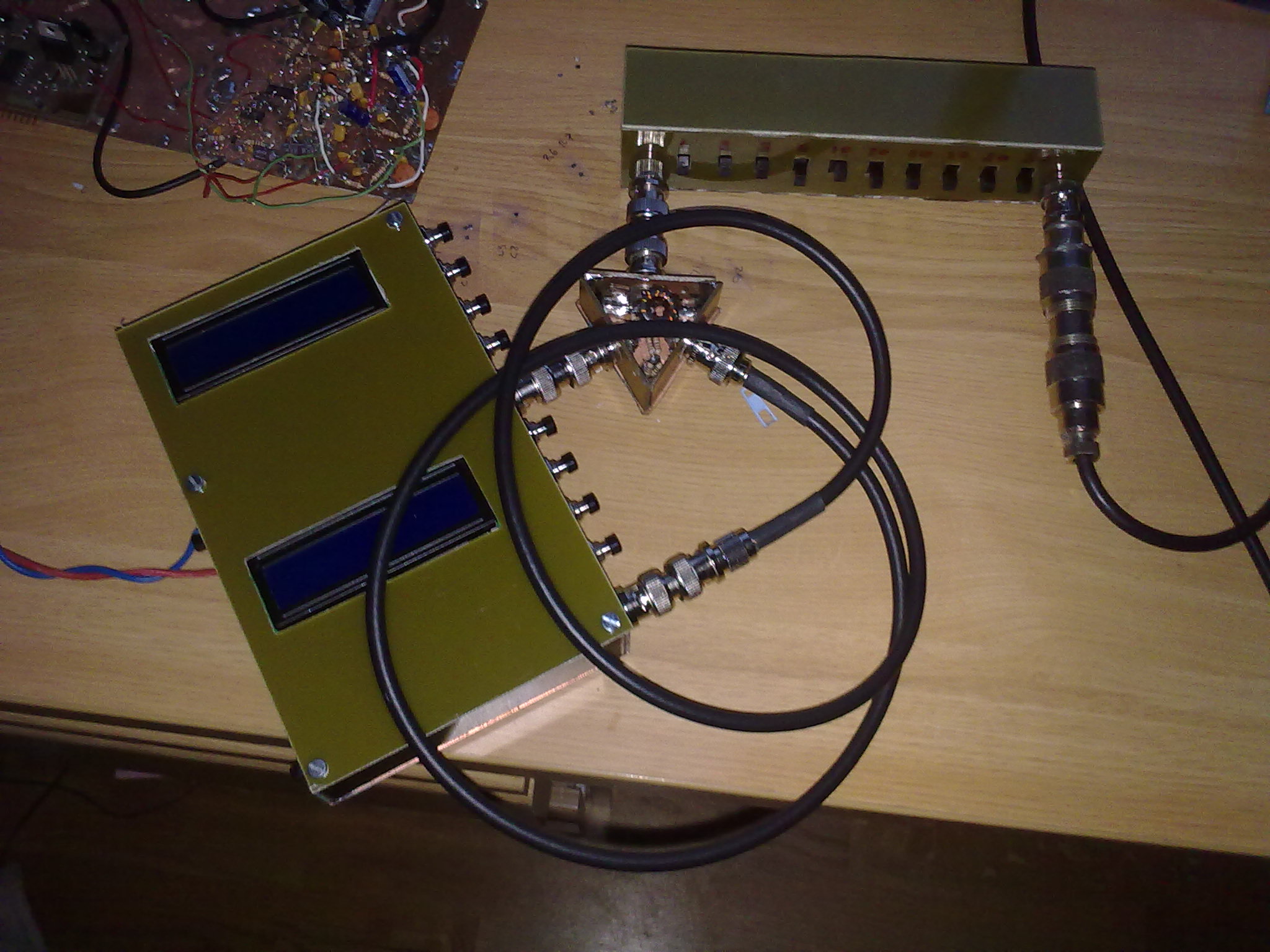 -6 dB hybrid combiner. This useful and easy to build device, combines the signals of both generators and provides isolation between them. I will also describe it in a future article. In the mean time, search in the Internet for "hybrid combiner" and enjoy, there is plenty of information.