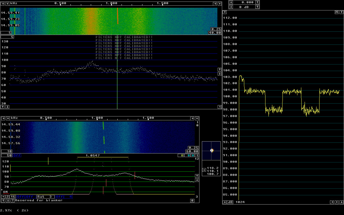 Here we have a Linrad screen capture example of the measurement session, showing a 3 dB (S+N/N) ratio (a bit lower)