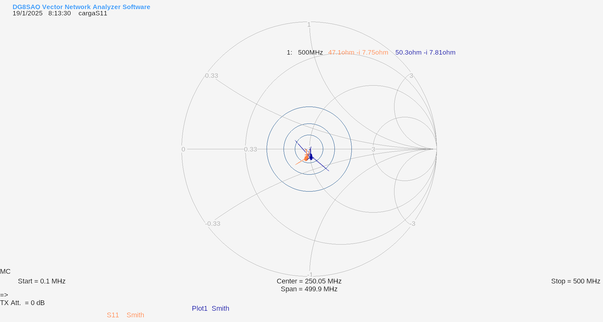 FIGURE 9: 50 Ohm load included with the NanoVNA - S11 Smith chart