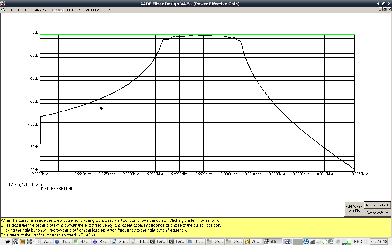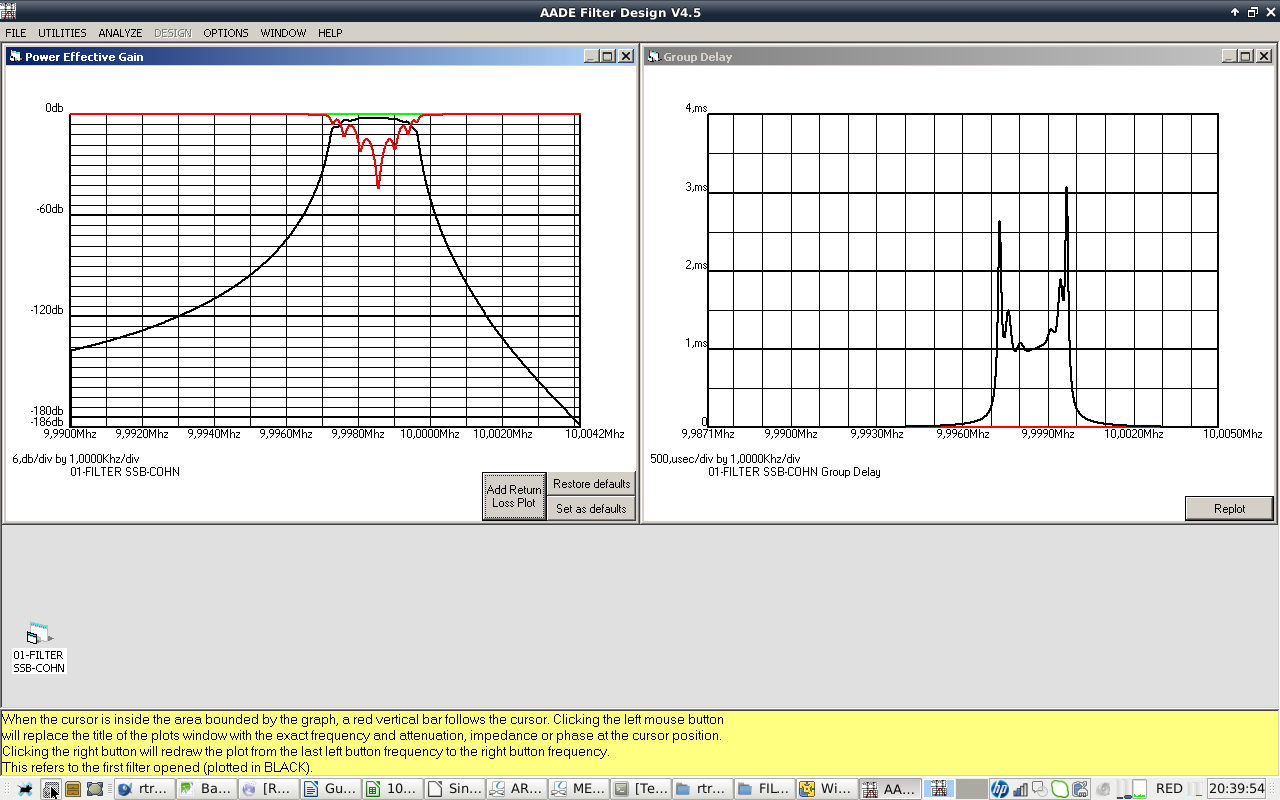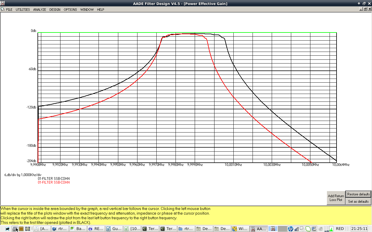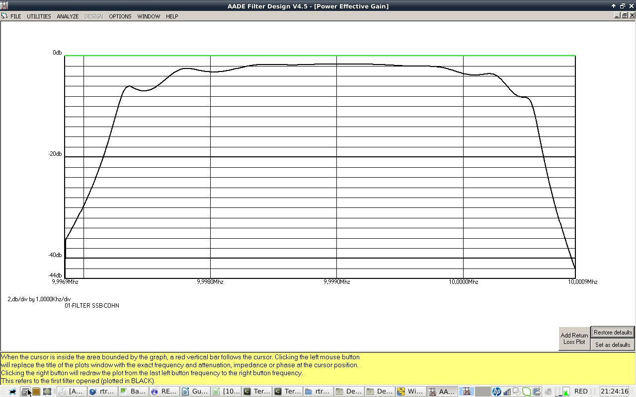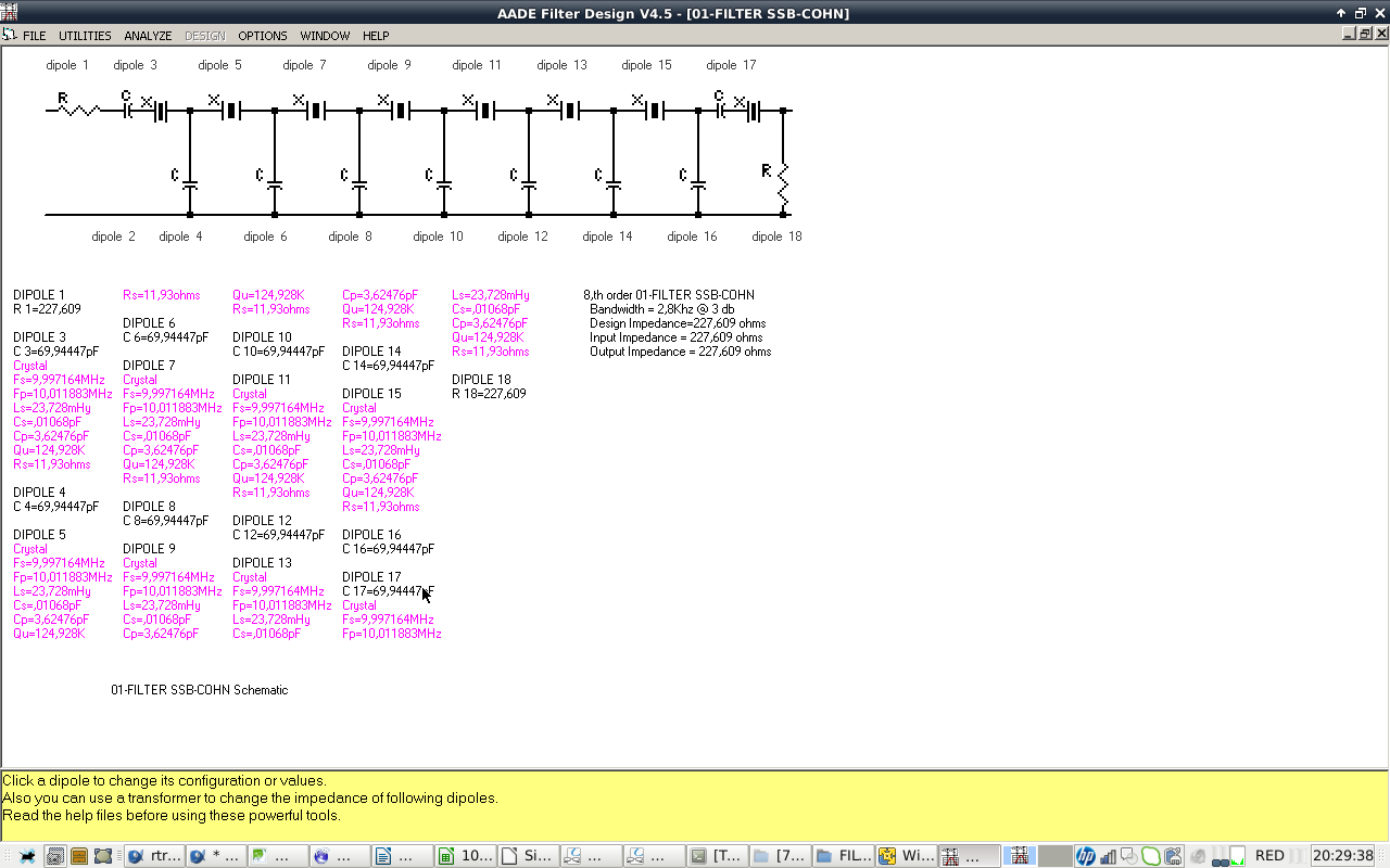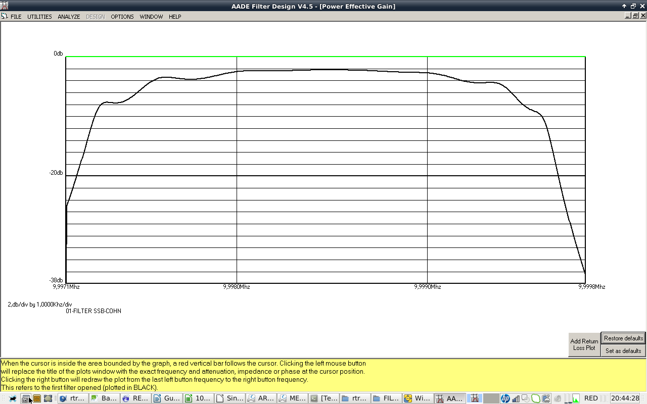 - IF CRYSTAL FILTER: 10 MHZ center frequency, 2800 Hz SSB BW, 400 Hz CW BW, 8 pole COHN/CHEBYCHEV. Cheap crystals selected from a batch of 100 bought at Ebay. Design with AADE software. Build and test with vector network analyzer. I will take care of getting good impedance match with preceding and following stages.
