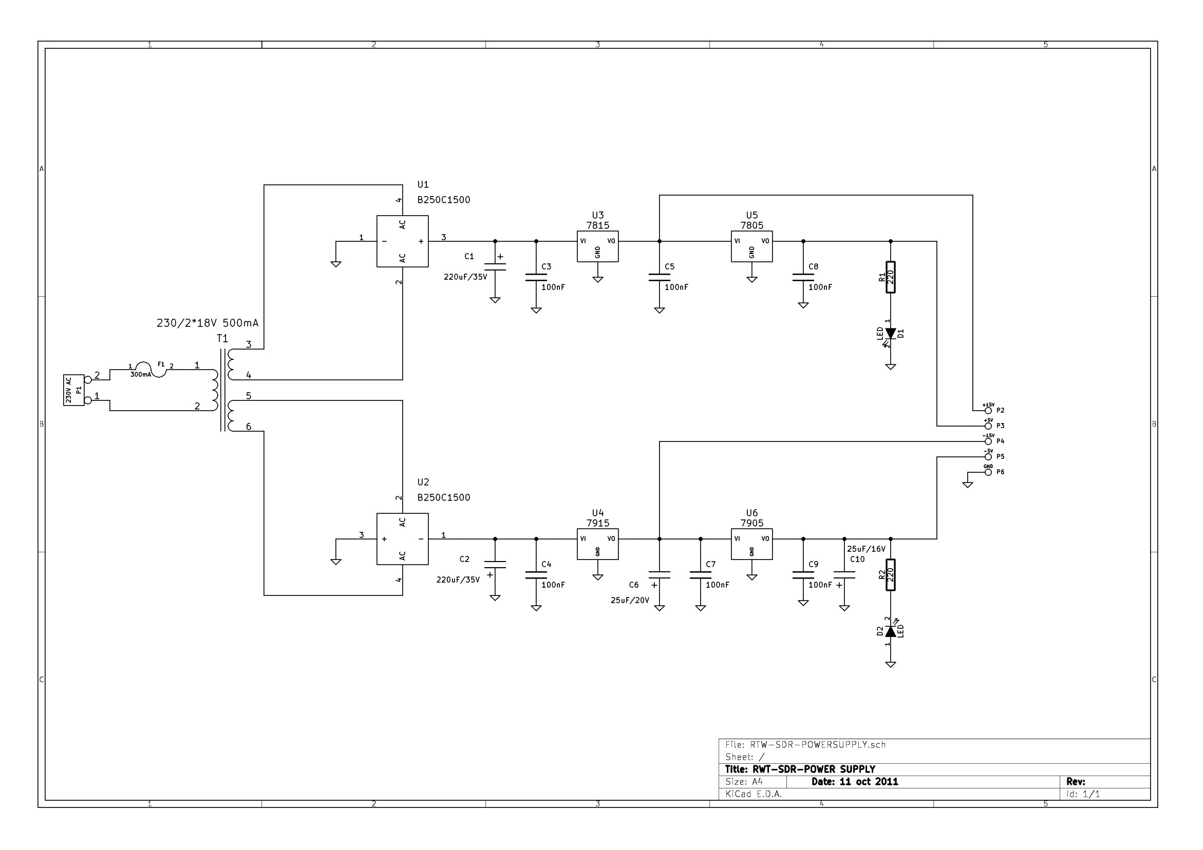- Power supply board. It provides +-15V and +-5V DC for the other boards. -5V is not used in this project.