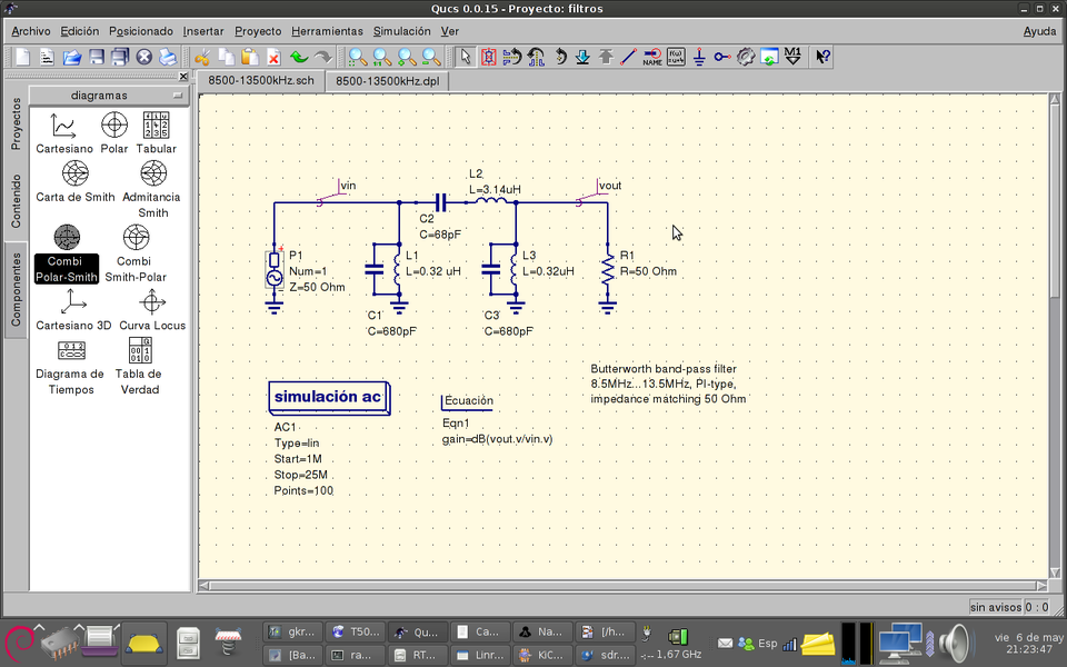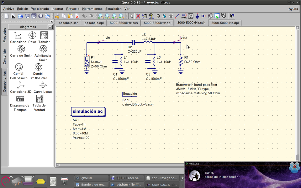 RF filter is a must in any kind of receiver, so I have started designing them. HF band will be divided in the following frequency ranges: