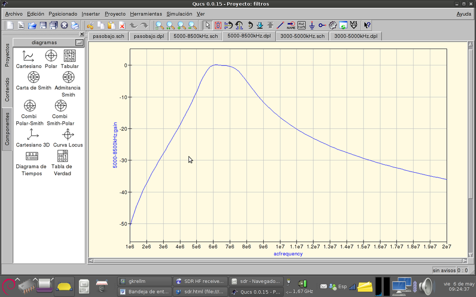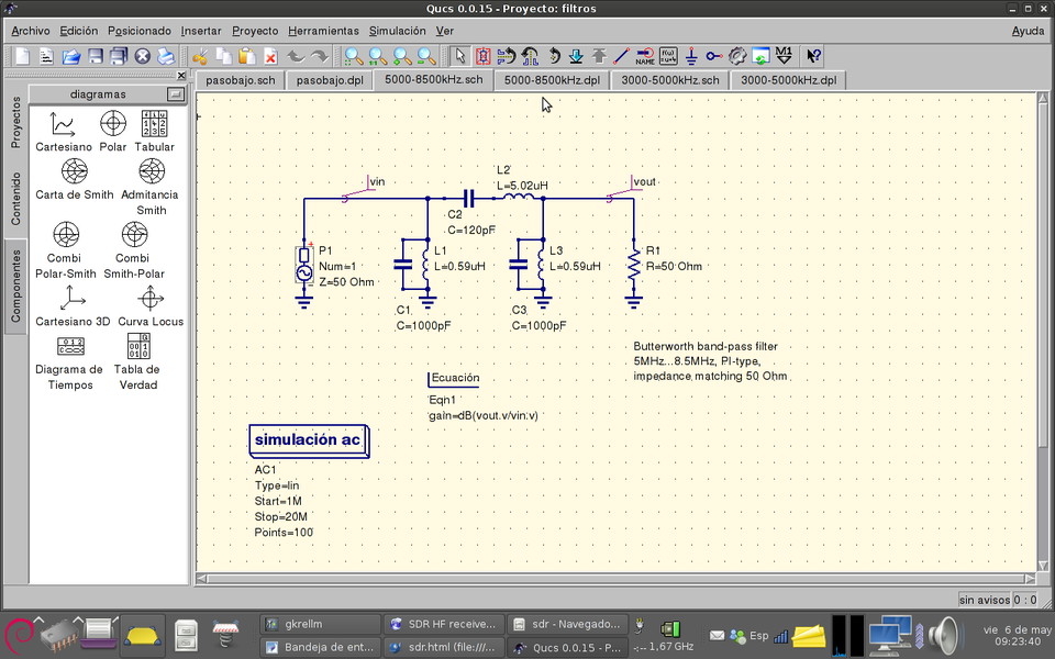 In this page I will briefly describe the design of a simple but decent HF Software Defined Receiver, SDR. I am not going to invent anything, it is intended only as an own educational project to learn how things work and get in touch with SDR. SDR receivers of this kind are superceeded by modern RF direct sampling techniques, but they can offer good performance at low cost. A friend of mine is an expert DSP, PIC, everything programmer so I thought it was the time to learn and have some fun.