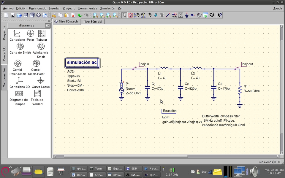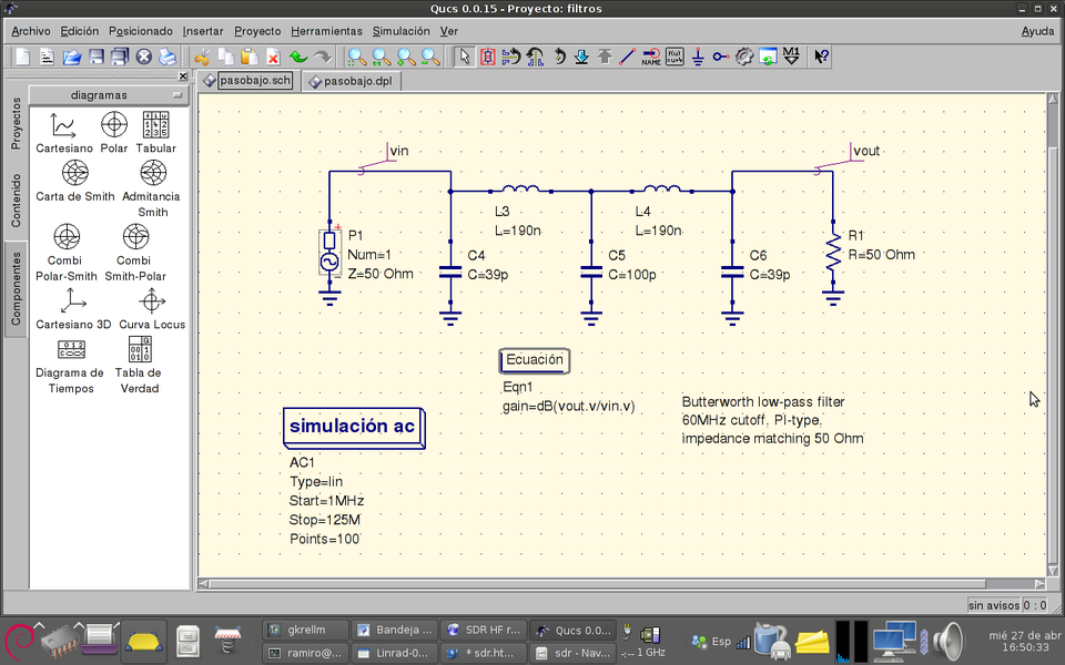 - Analog simulation: QUCS.