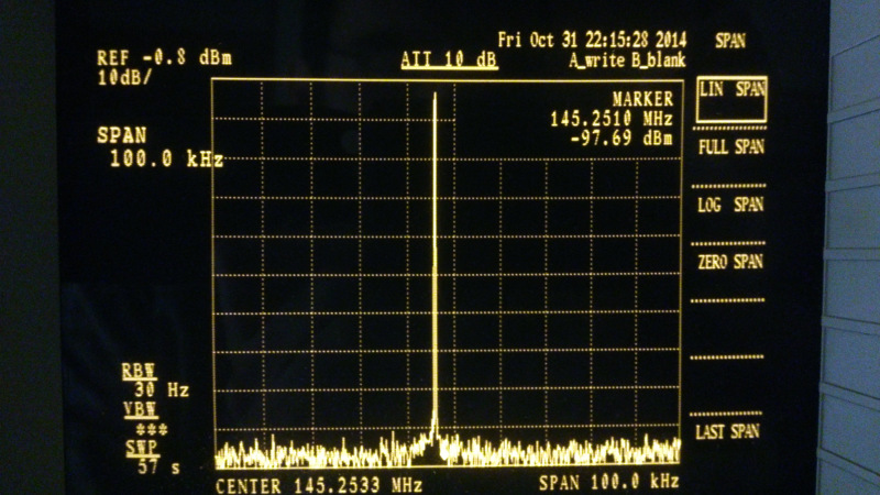 FIGURE 2: 145 MHz SIGNAL. 100kHz SPAN